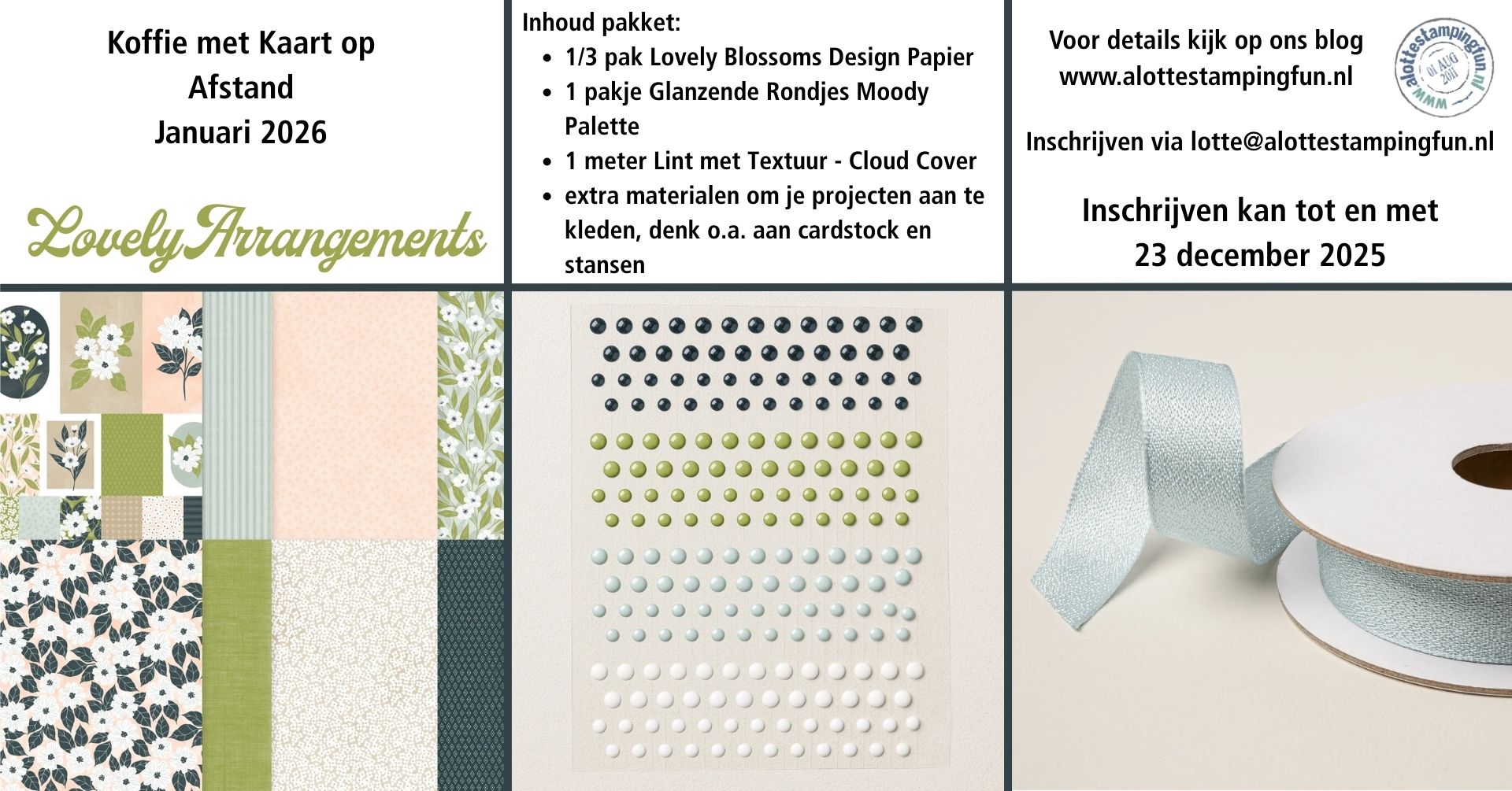 In de maand Januari gaan we 5 weken lang werken met producten uit de Lovely Arrangements Suite. Je ontvangt: